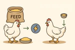 در اکثر شرایط تغذیه ای در فارم، سطح انرژی جیره عامل اصلی مؤثر بر مصرف خوراک است. در مکانیسم‌های تنظیمی که قبلاً توضیح داده شد، یک سیستم ذاتی وجود دارد که نیازهای انرژی “روزانه” پرنده را به طور دقیق کنترل می‌کند. با افزایش غلظت انرژی جیره، پرنده خوراک کمتری می‌خورد، در حالی که کاهش سطح انرژی جیره باعث افزایش مصرف می‌شود. این مکانیسم در مورد همه انواع و سنین مرغ صدق می‌کند و بسیار دقیق و درست است.